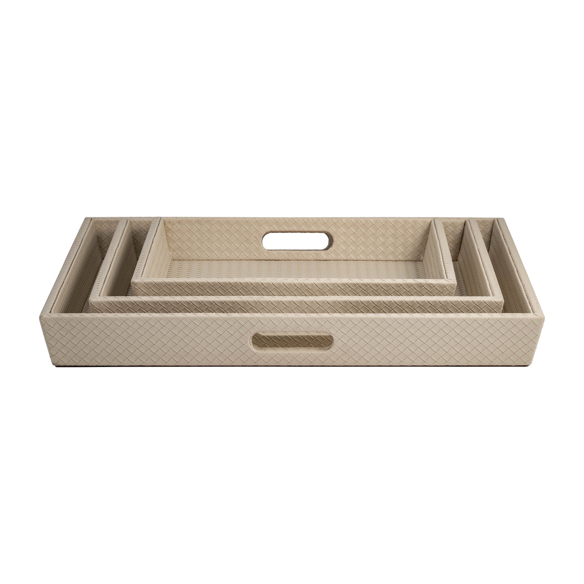 S/3 16/20/24" Leather/Wood Diamondweave Trays, Tan