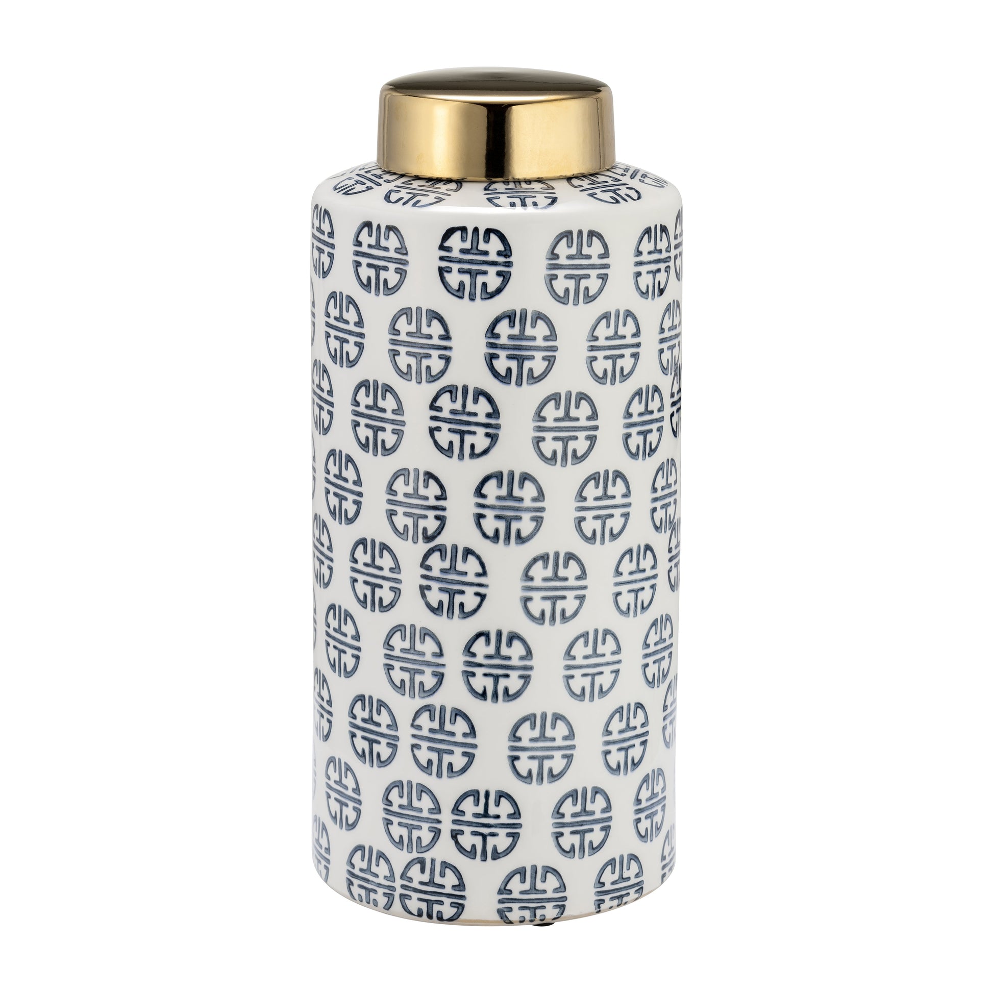 Cer, 13"H Modern Ginger Jar, Navy/White