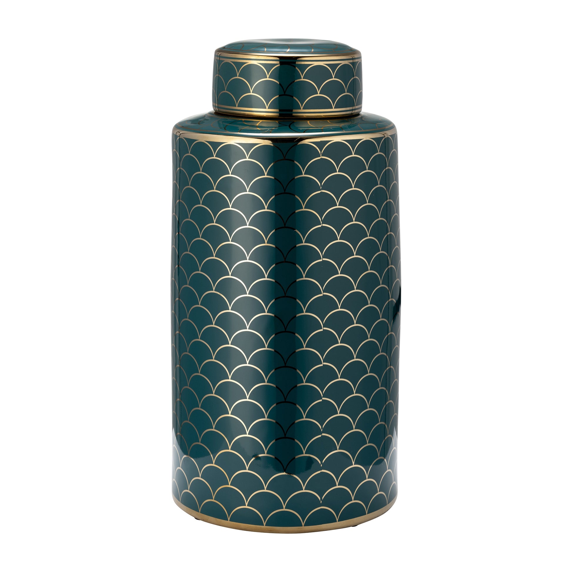 Cer, 16" Crackle Jar W/ Lid, Gold