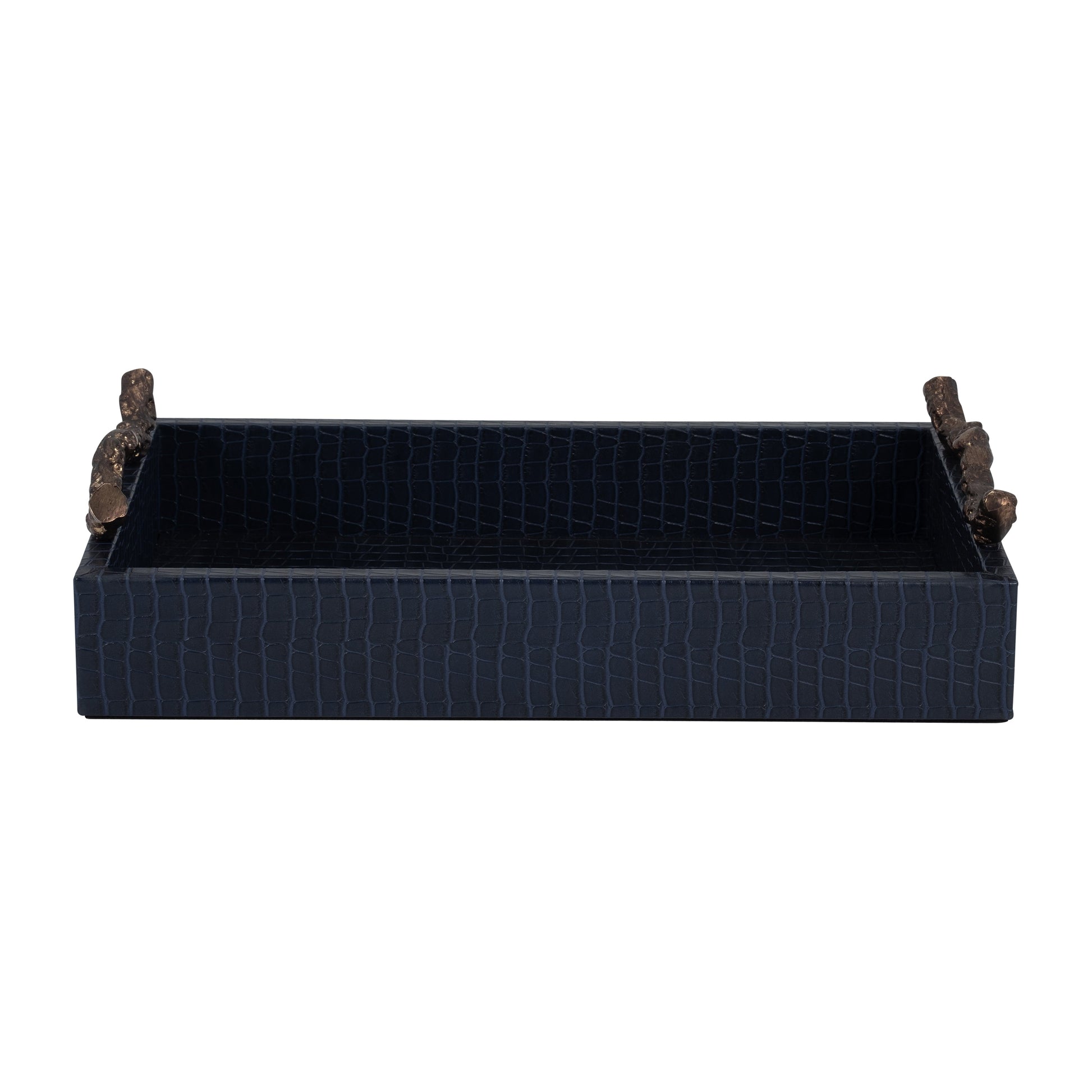 Faux Leather, 16" Copenhagen Tray, Navy/Gold