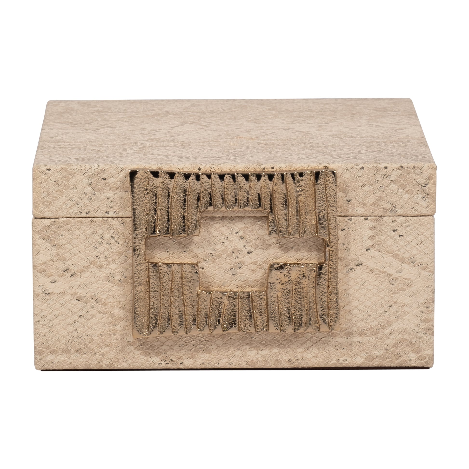 Faux Leather, 8" Square Metallic Box, Nude