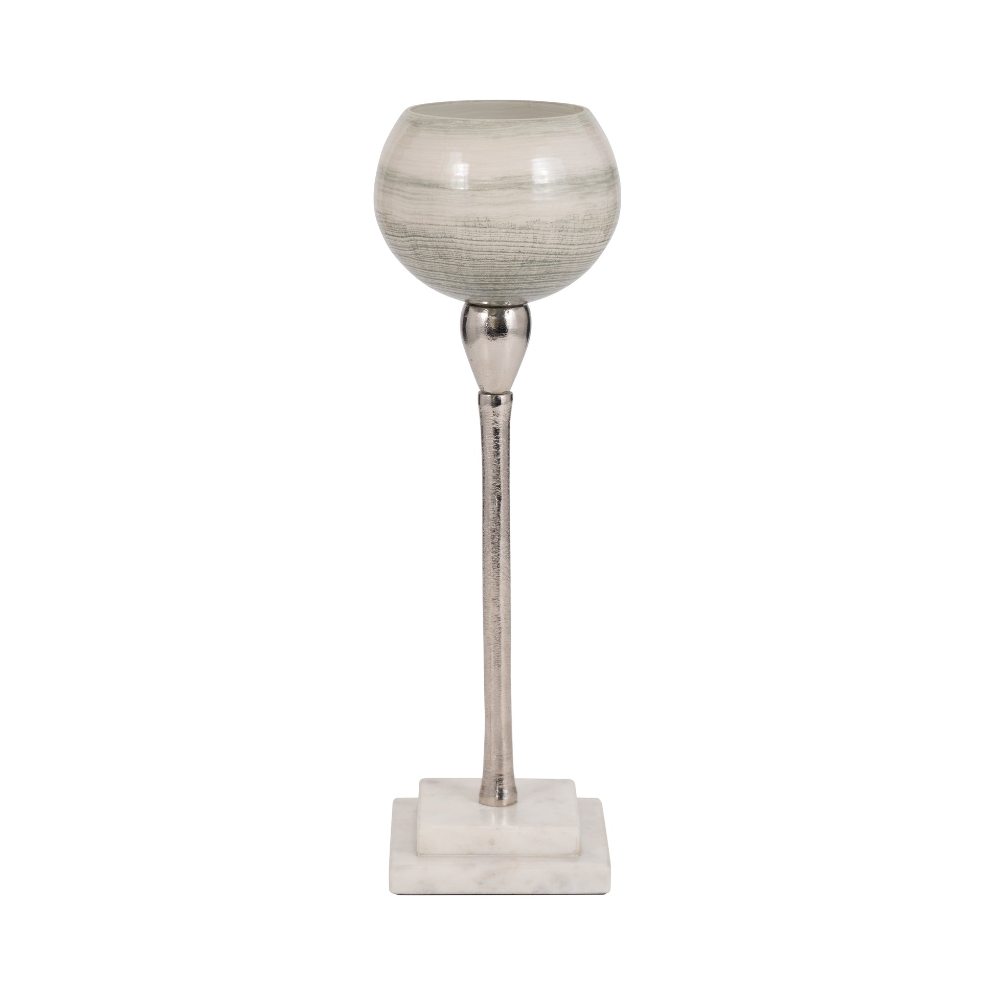 Glass, 15" Votive Holder W Marble Stand, Sage/Silv