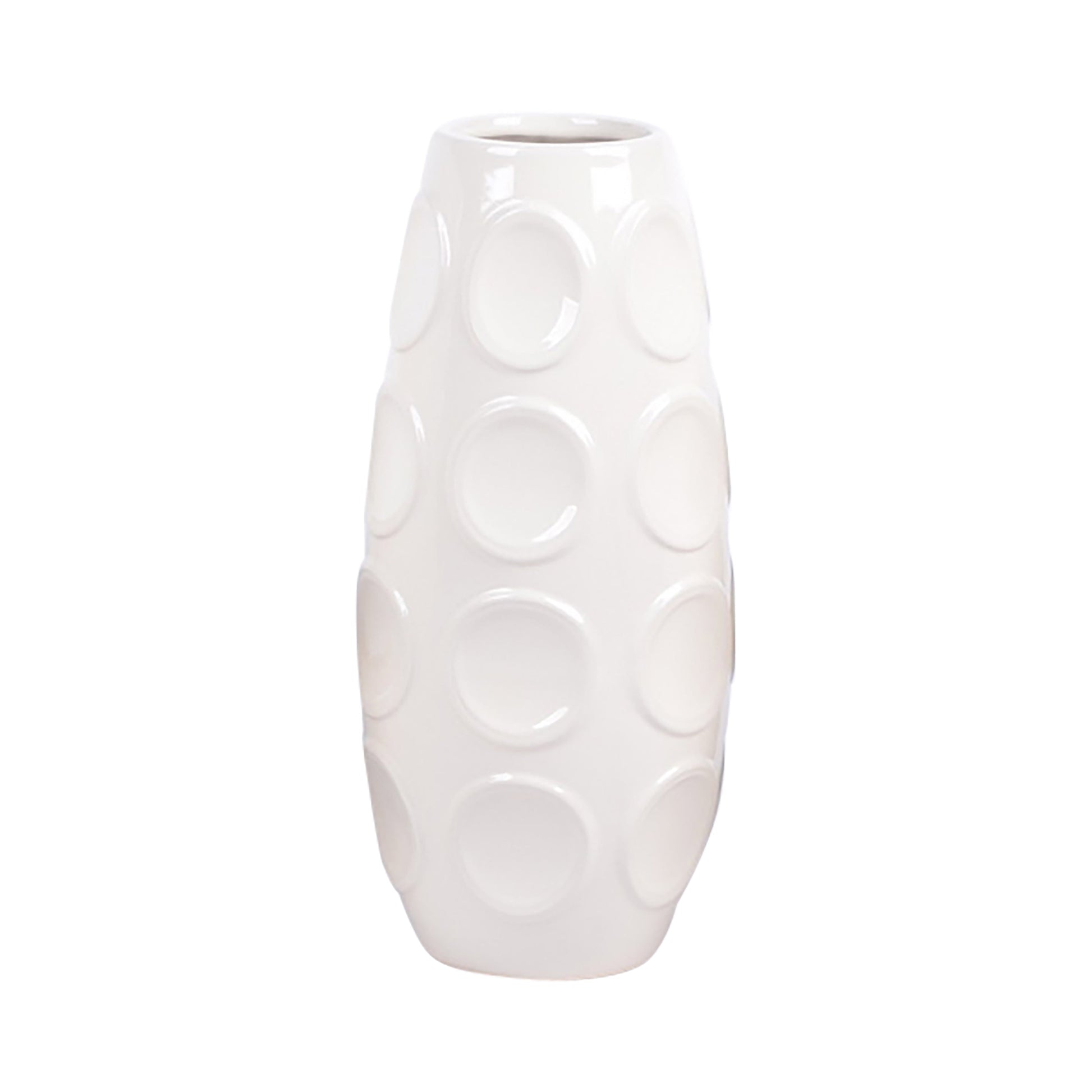 Stoneware, 13" Circle Embossed Vase, Cotton