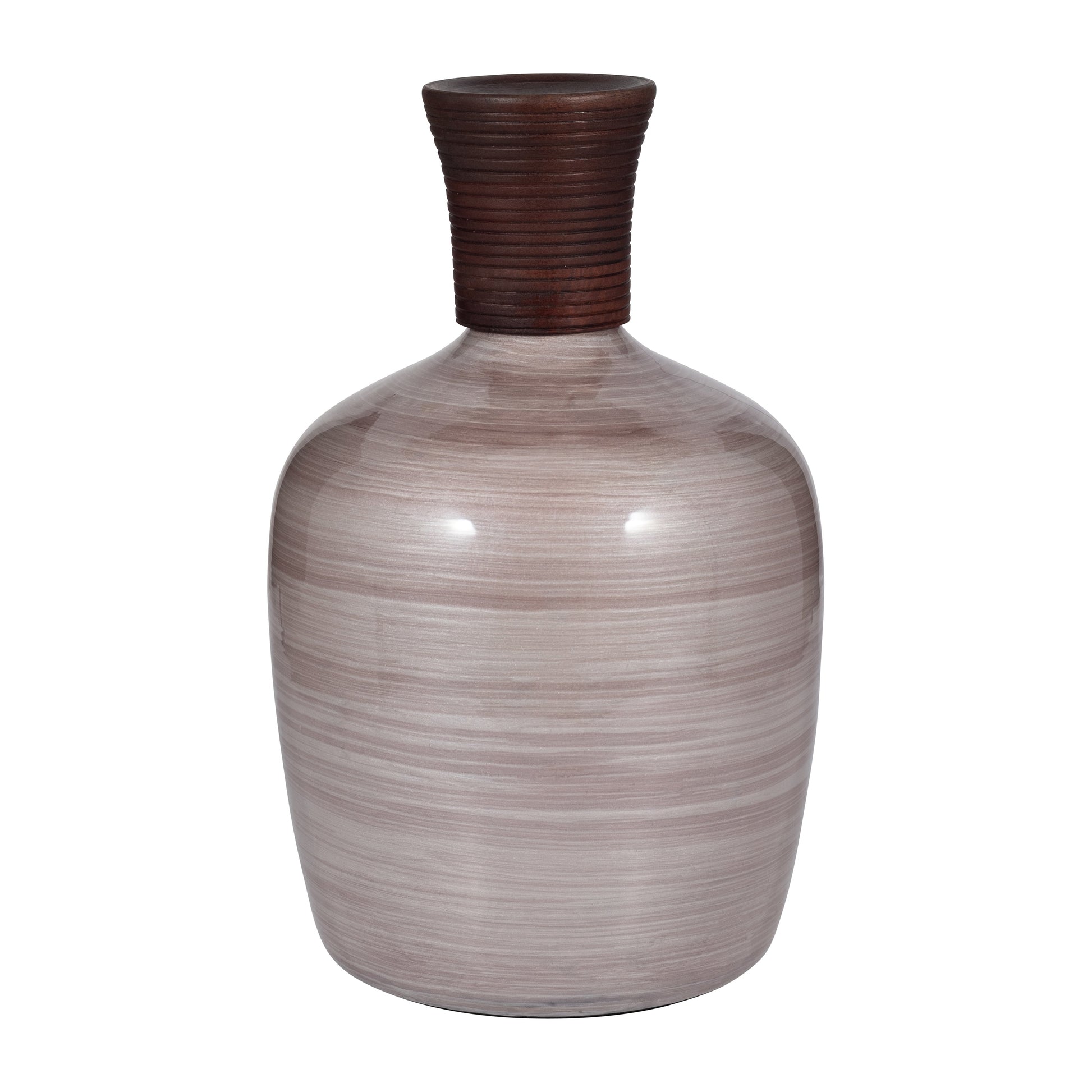 Glass, 16" Wooden Top Vase, Blush
