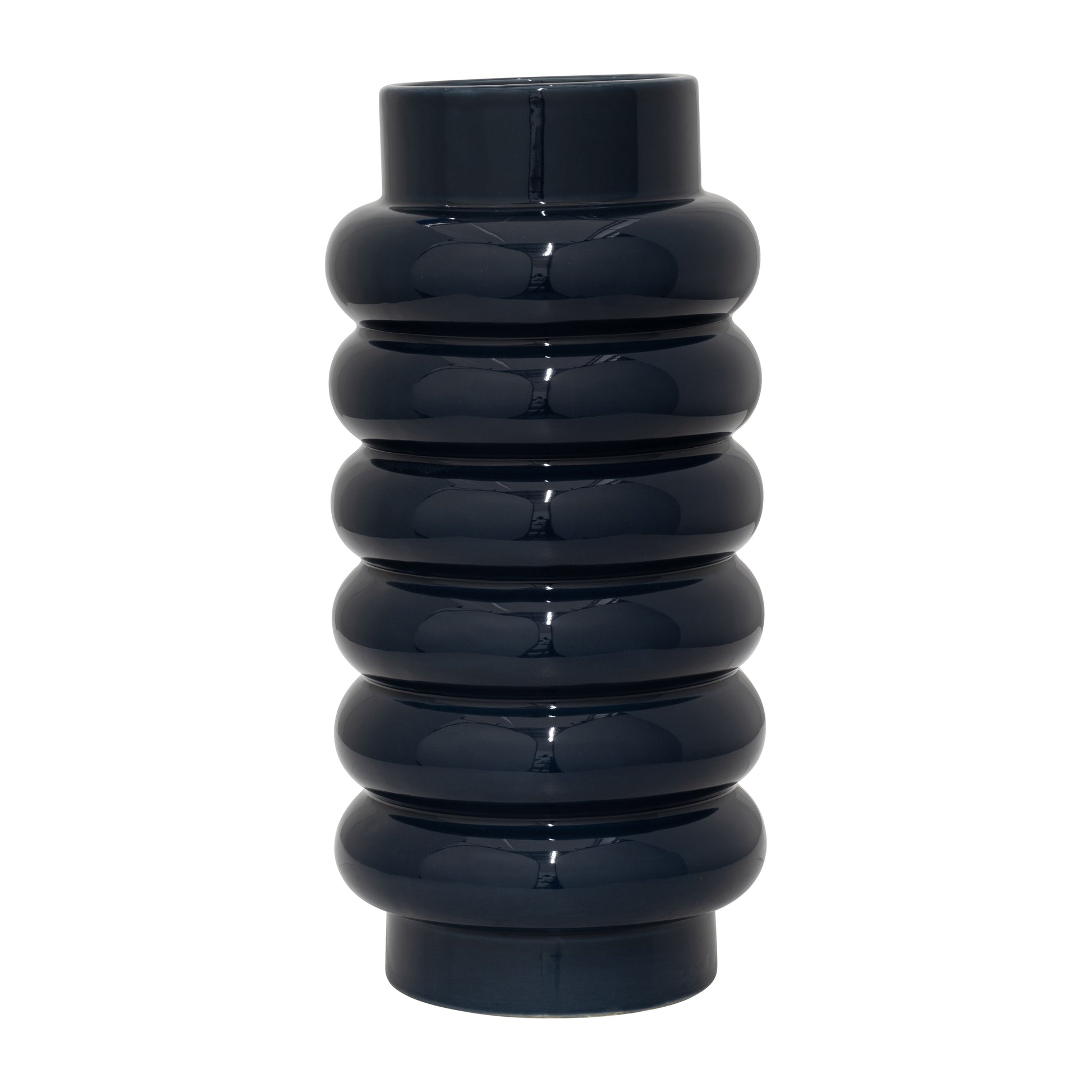 Cer, 16" Ribbed Vase, Navy
