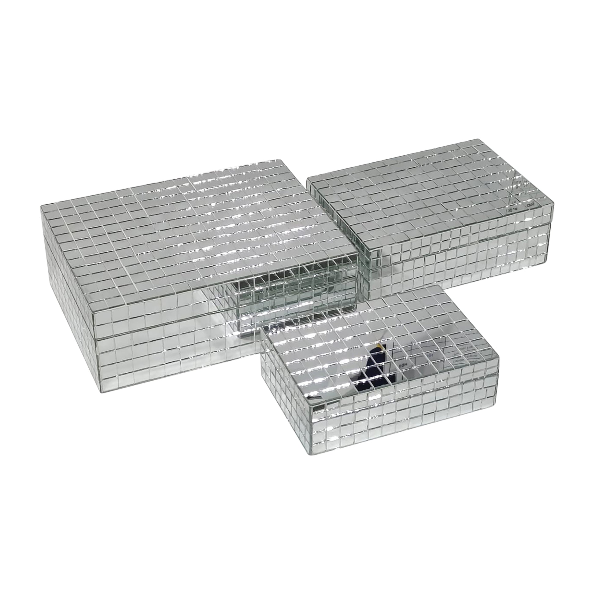 S/3 6/7/9" Mosaic Boxes, Silver
