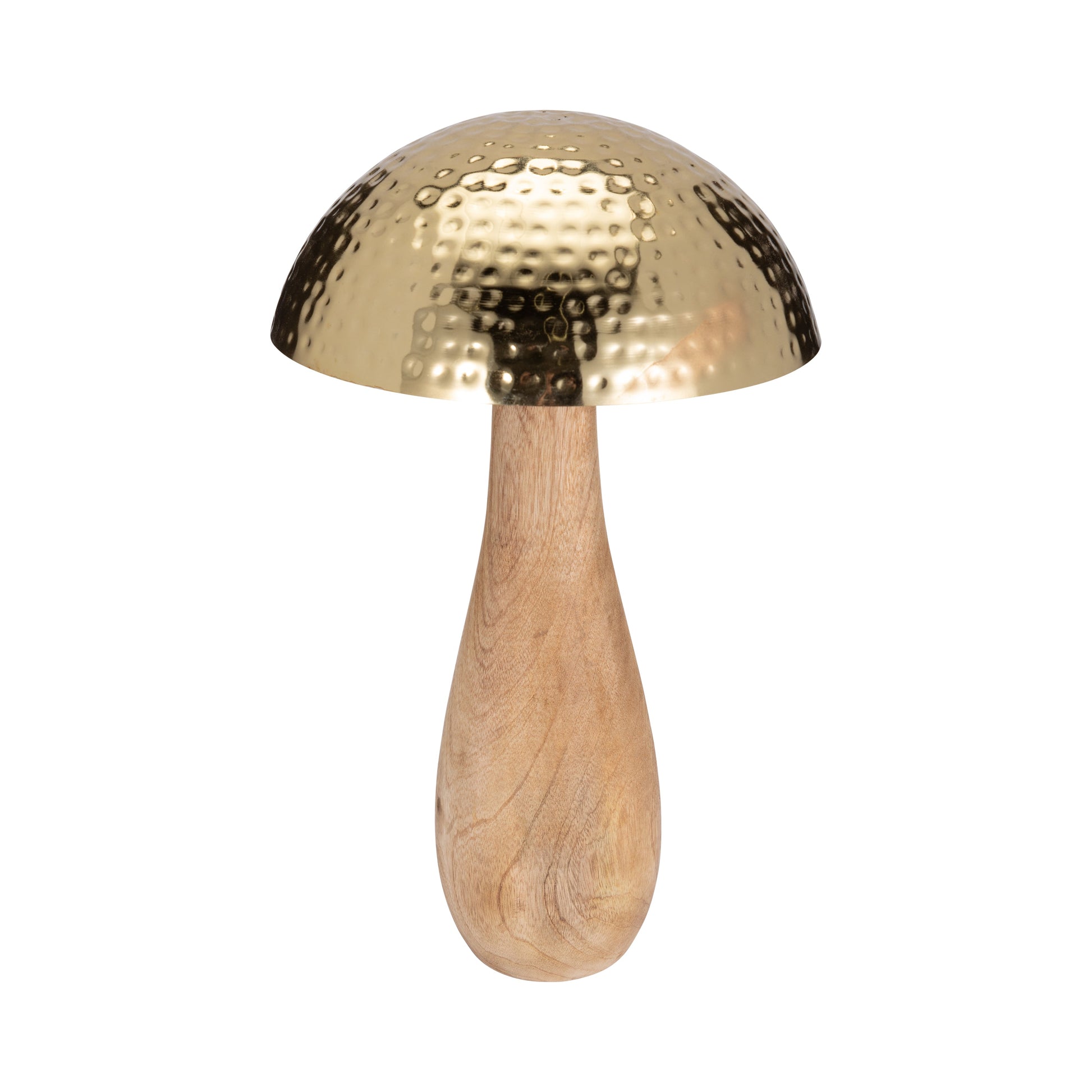 Metal, 20" Mushroom W/ Wood Base, Gold