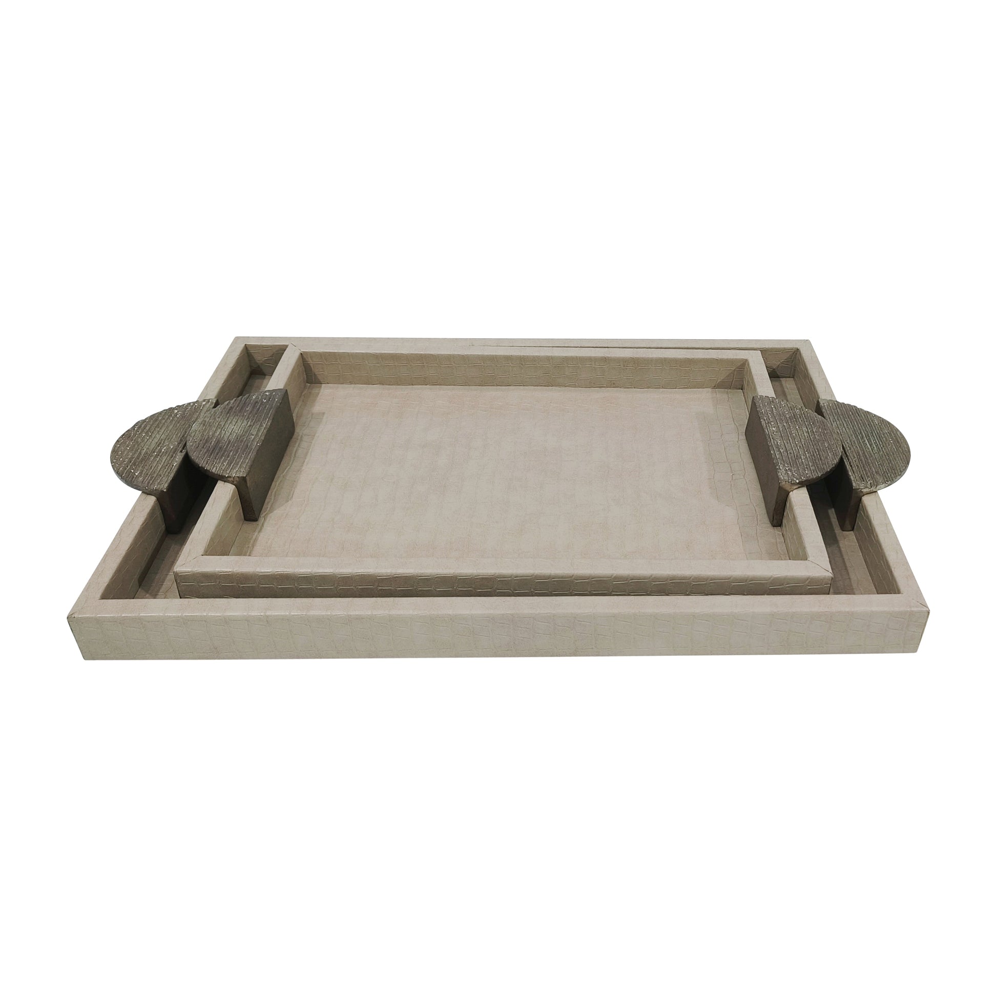 Faux Leather, S/2 15/19" Croc Trays, Nude/gold