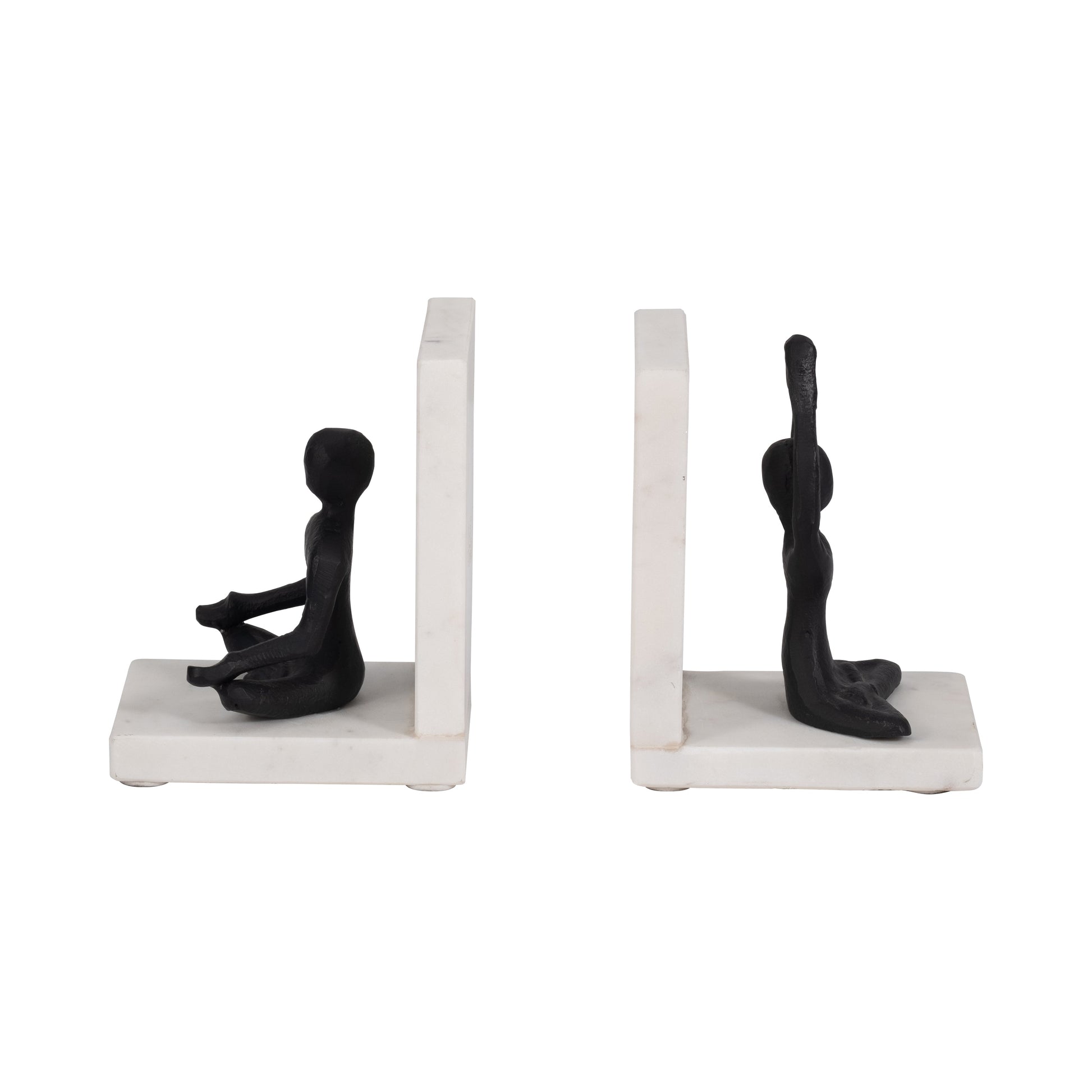 Metal, S/2 6" Yoga Ladies Bookends On Marble, Blk/