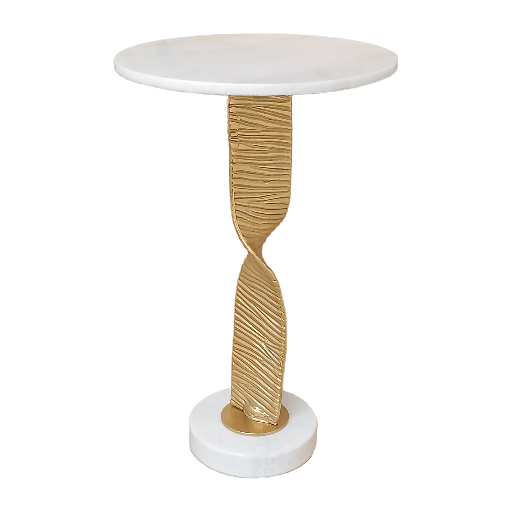 Metal, 24" Twisted Base Accent Table,white/gold Kd
