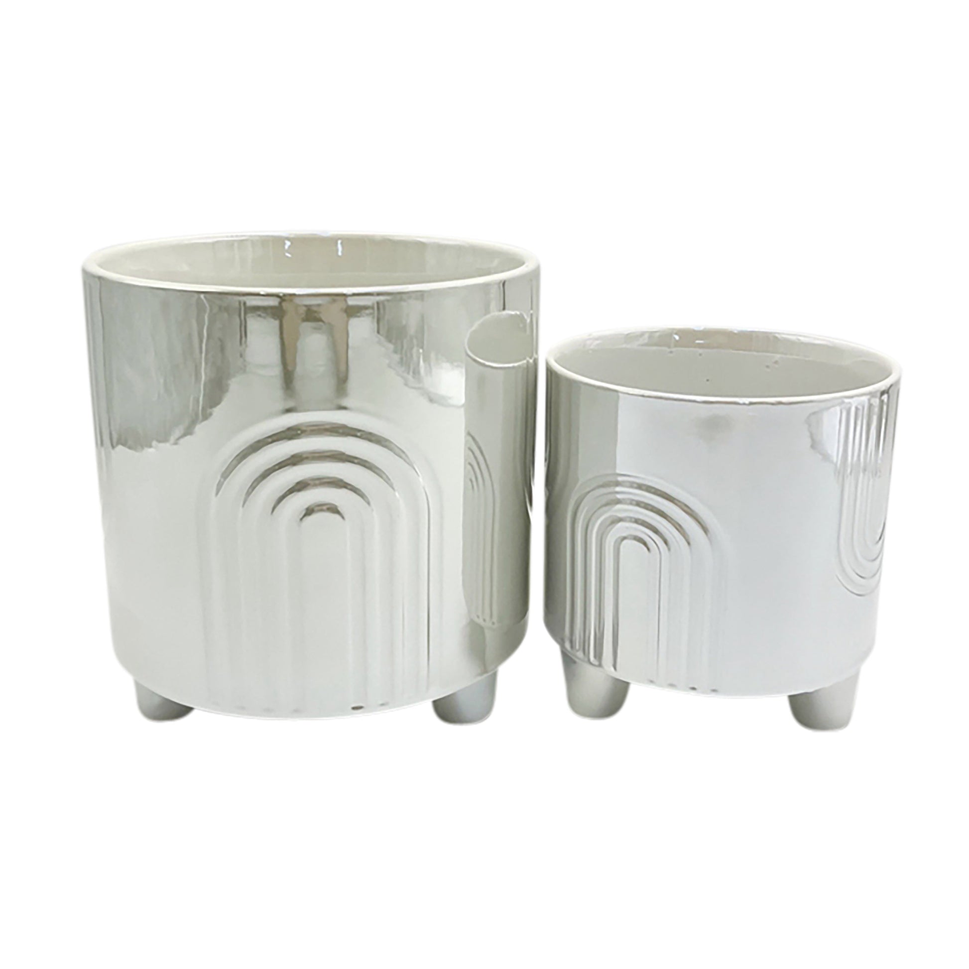 S/2 6/8" Iridescent Bravais Footed Planters, Ivory