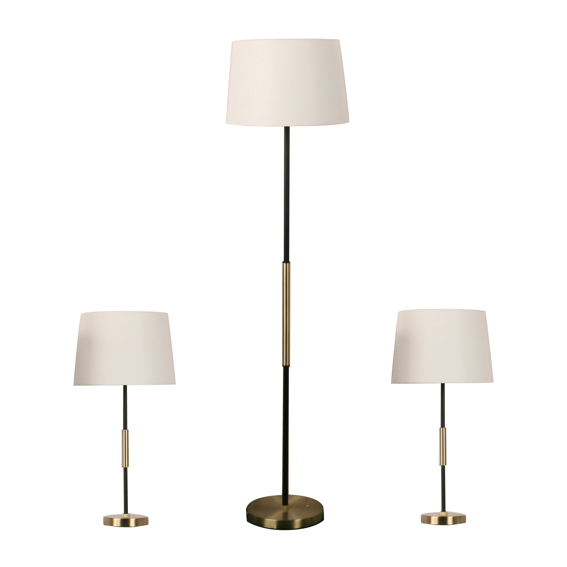 Metal, S/3 26/60" Slim 2-Tone Lamps,Antique/Black