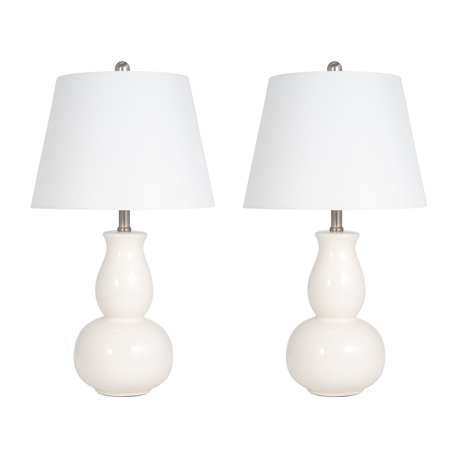 S/2 Ceramic 26" Gourd Table Lamp, White