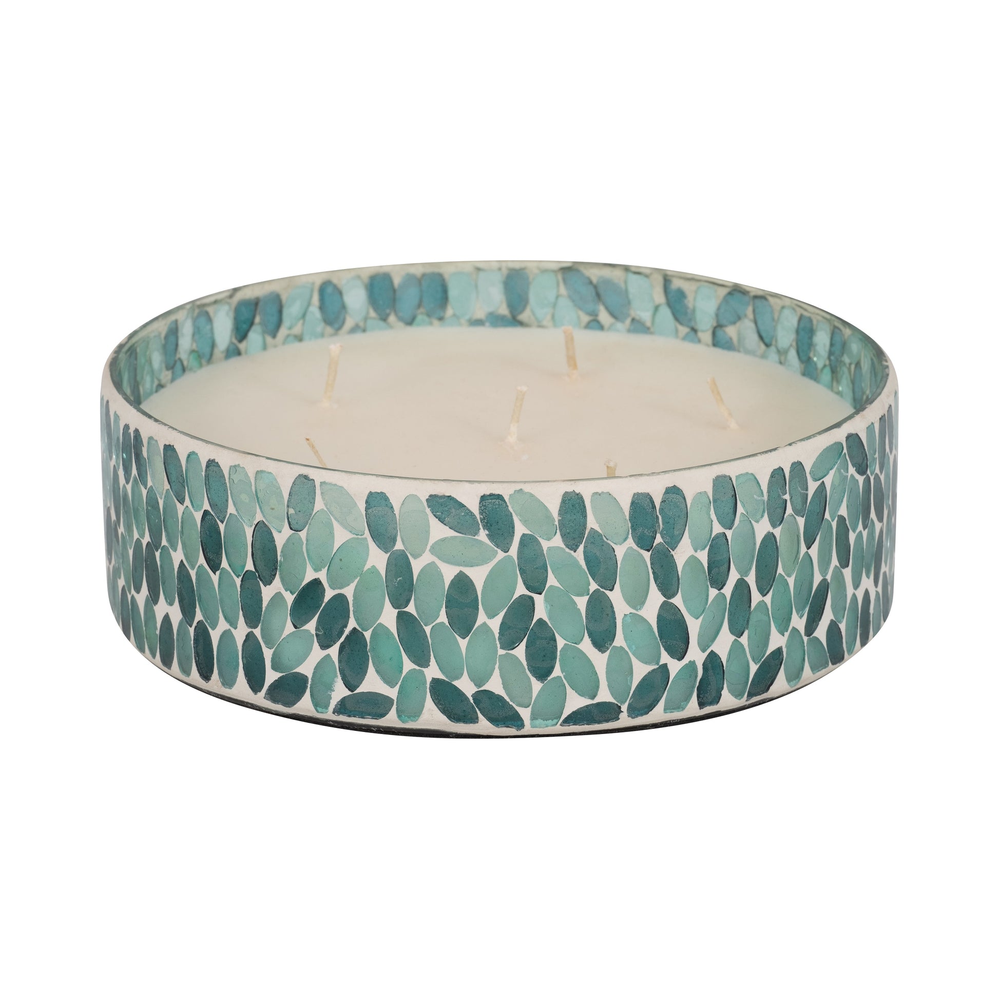 Glass, 8" 49 Oz Mosaic Bowl Scented Candle, Blue M